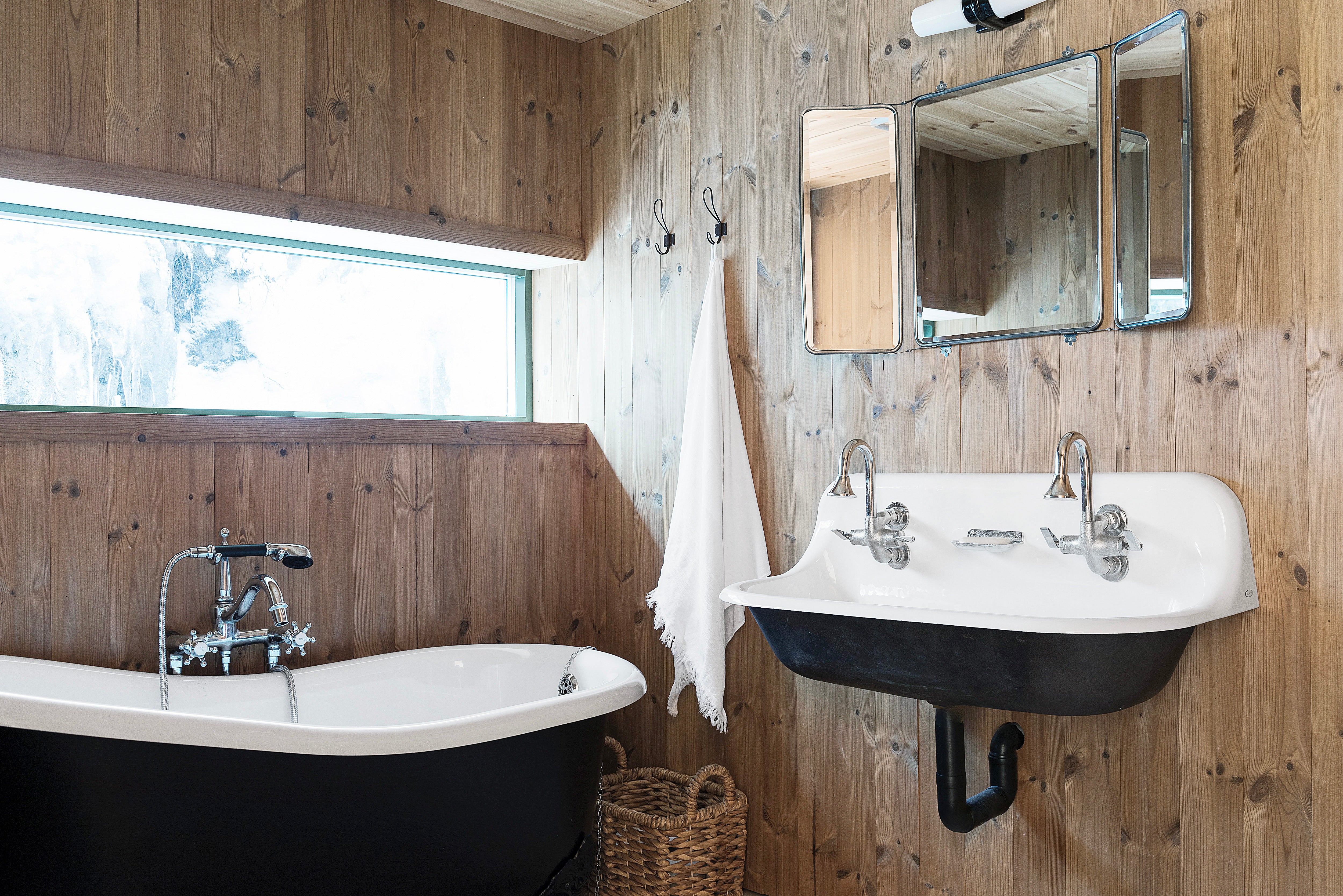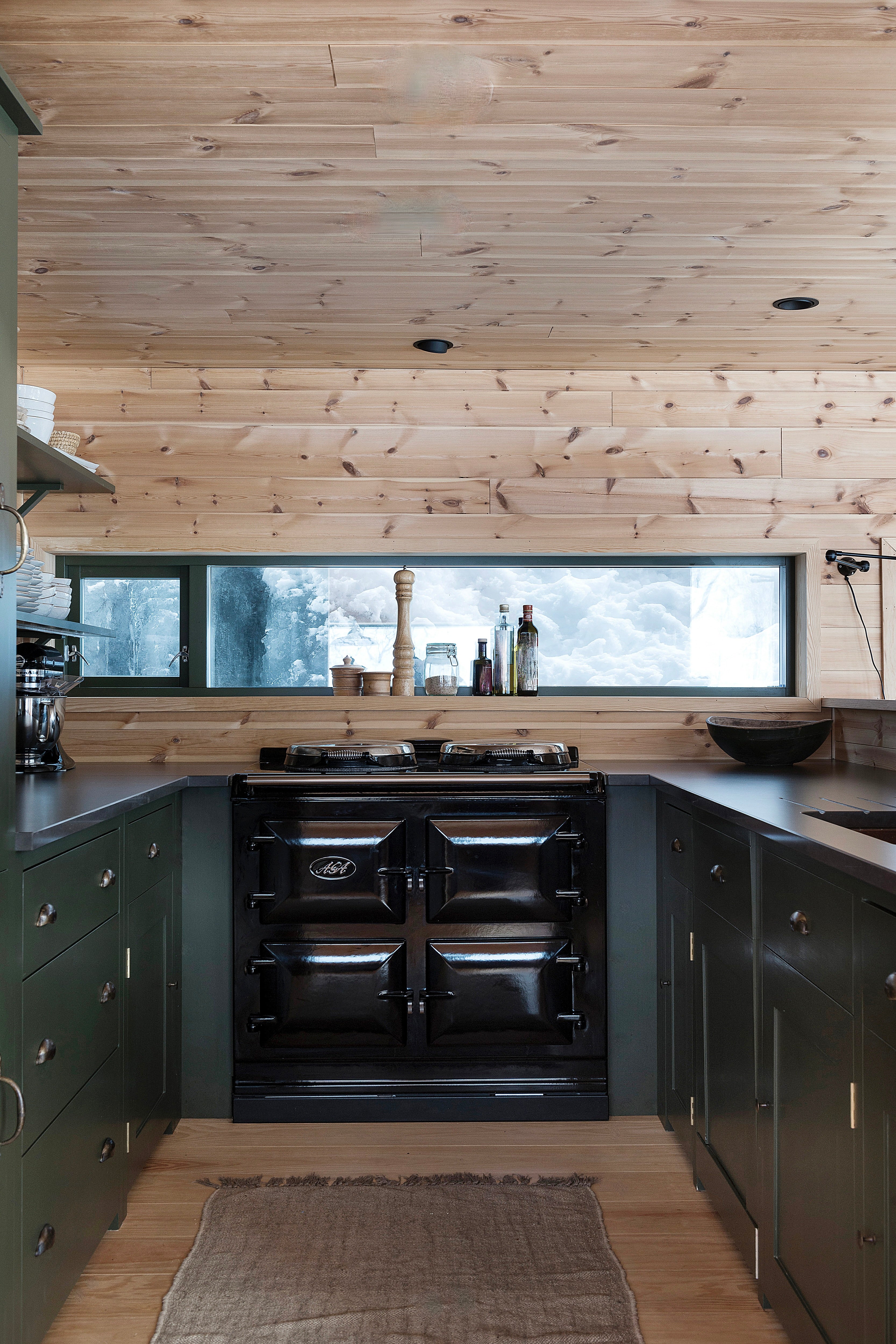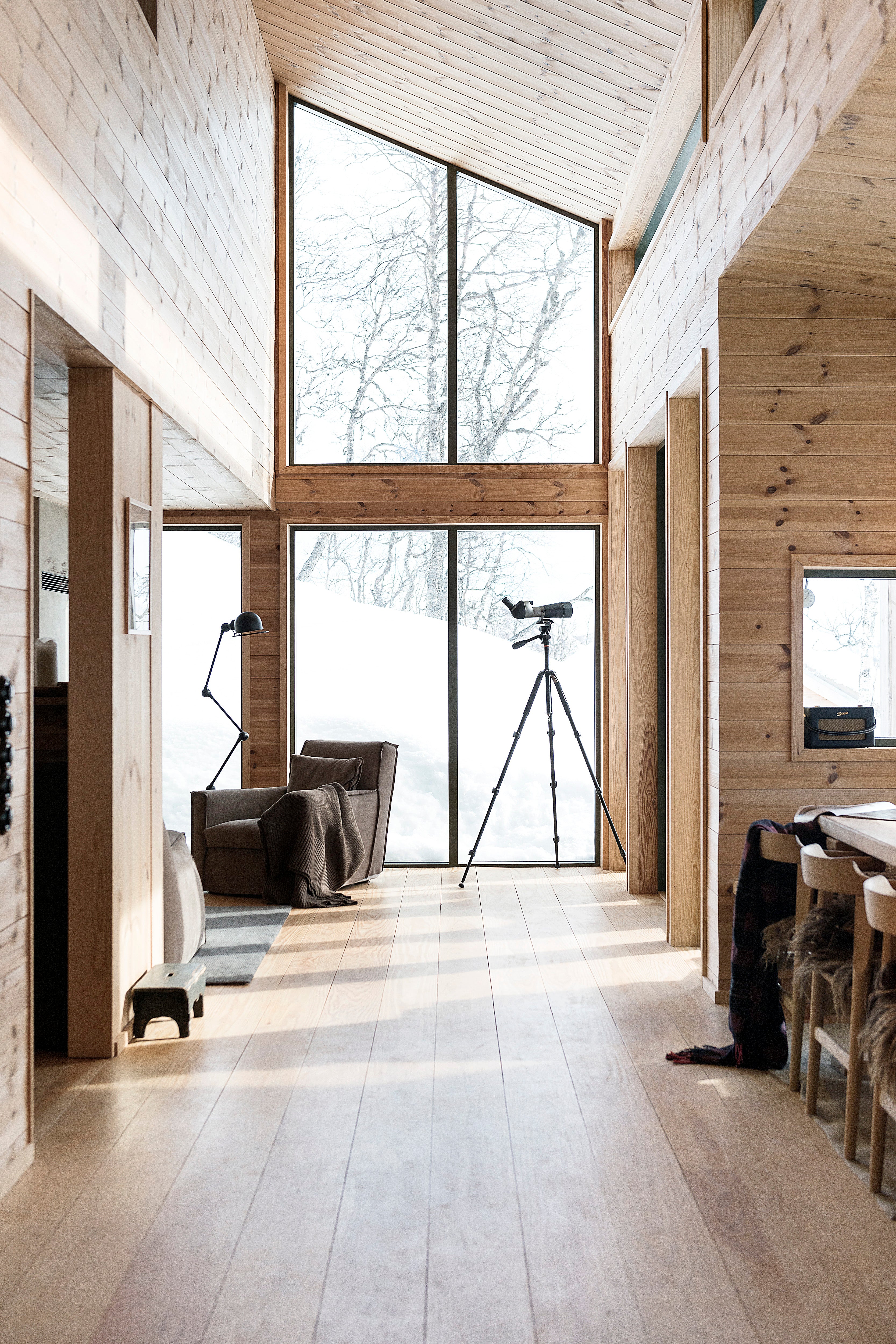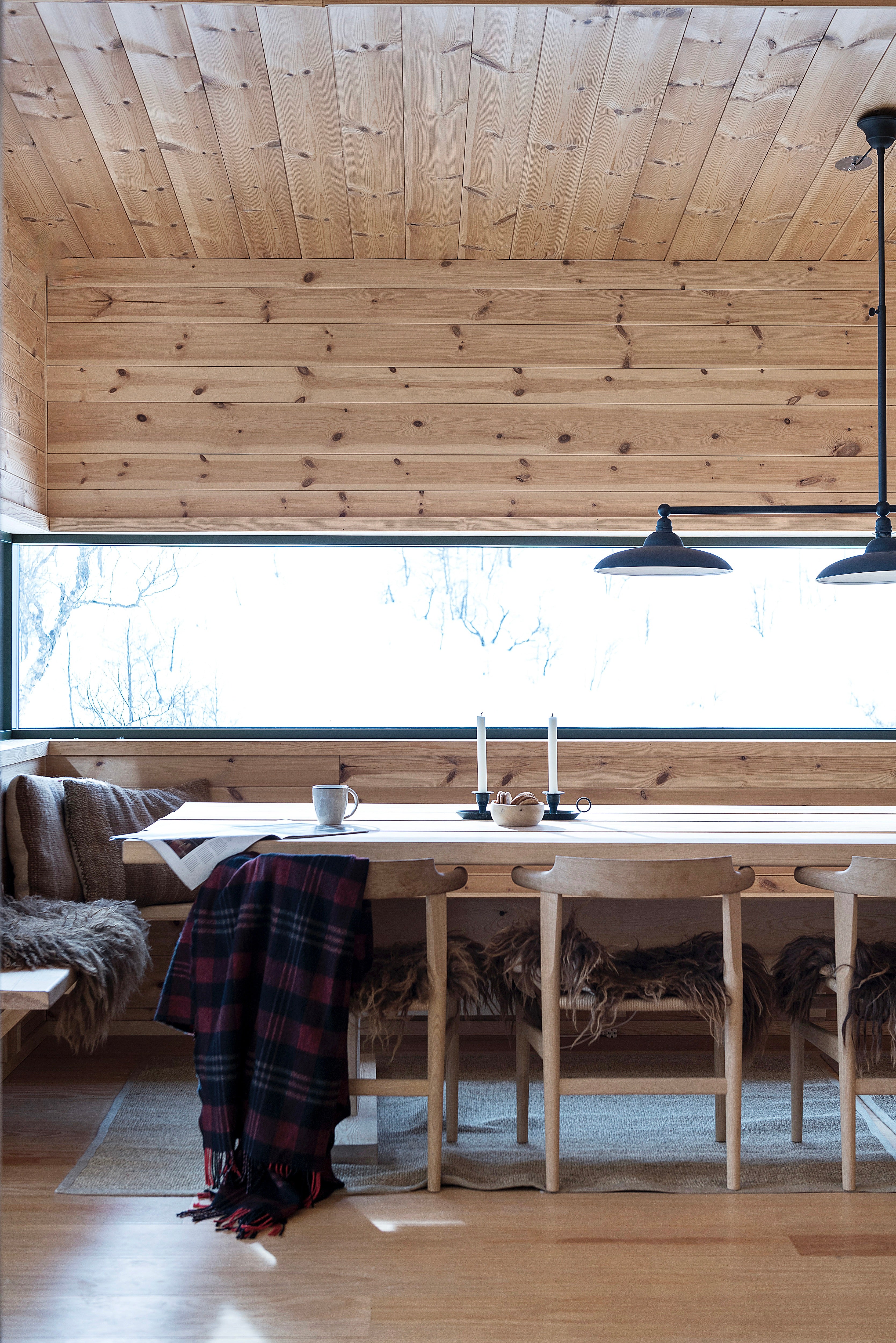 Gjennom et tett samarbeid med arkitekt og byggherre har Reservoir utviklet et interiør som understøtter hyttens arkitektoniske uttrykk, skaper en varm og innbydende atmosfære, og sikrer gjennomgående detaljer og helhet i alle rom. Det ble valgt gjennomgående naturmaterialer som tåler å bli brukt, og som bare blir vakrere med hver skrape i gulvet, perfekt for en hytte som skal brukes av både barn og hund. Den fantastiske AGA-komfyren ble heist på plass med helikopter og bidrar med varme, lunhet og tyngde i det ellers lyse interiøret. Resultatet er en moderne, tidløs hytte hvor arkitektur og interiør smelter harmonisk sammen.