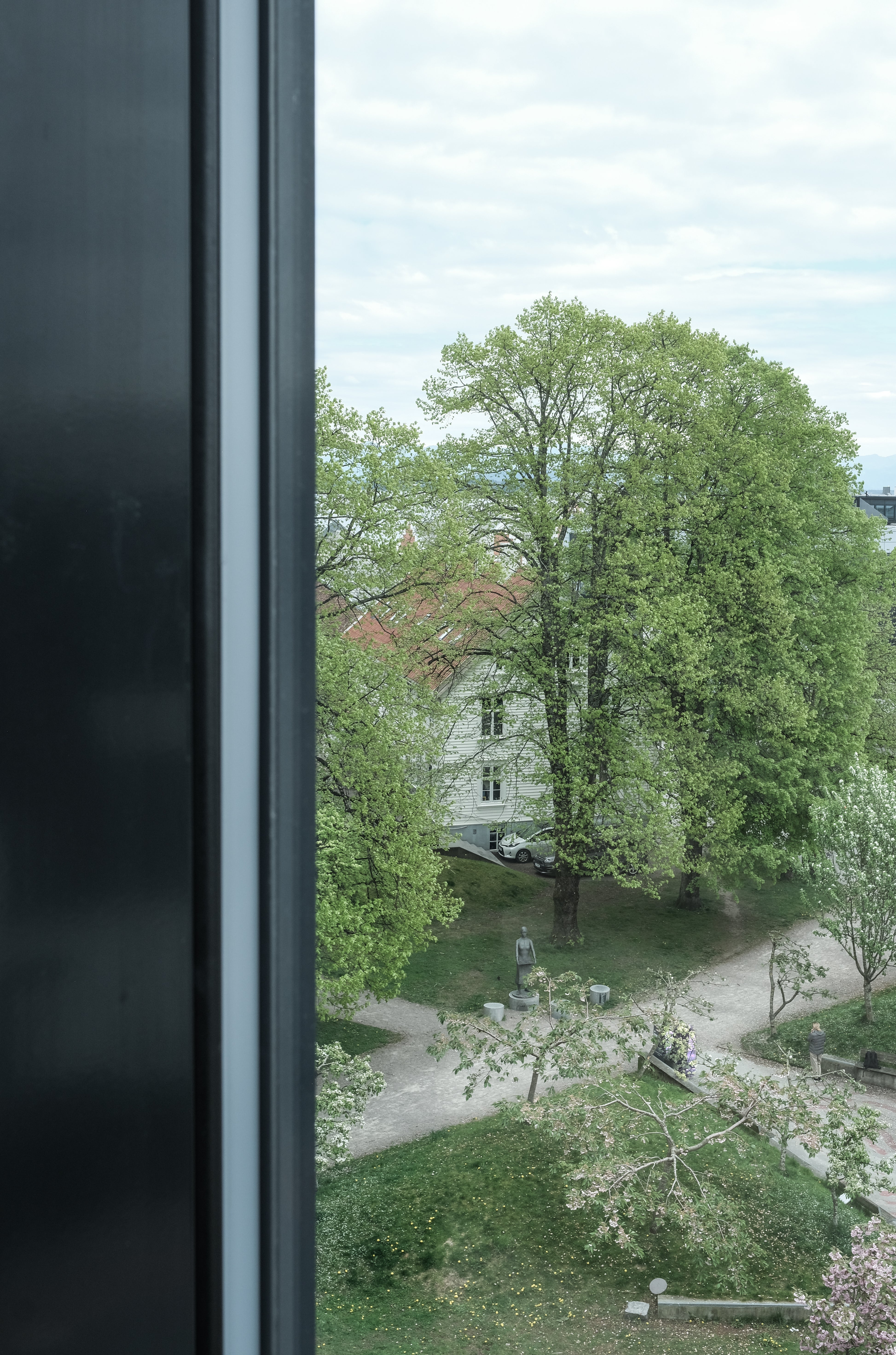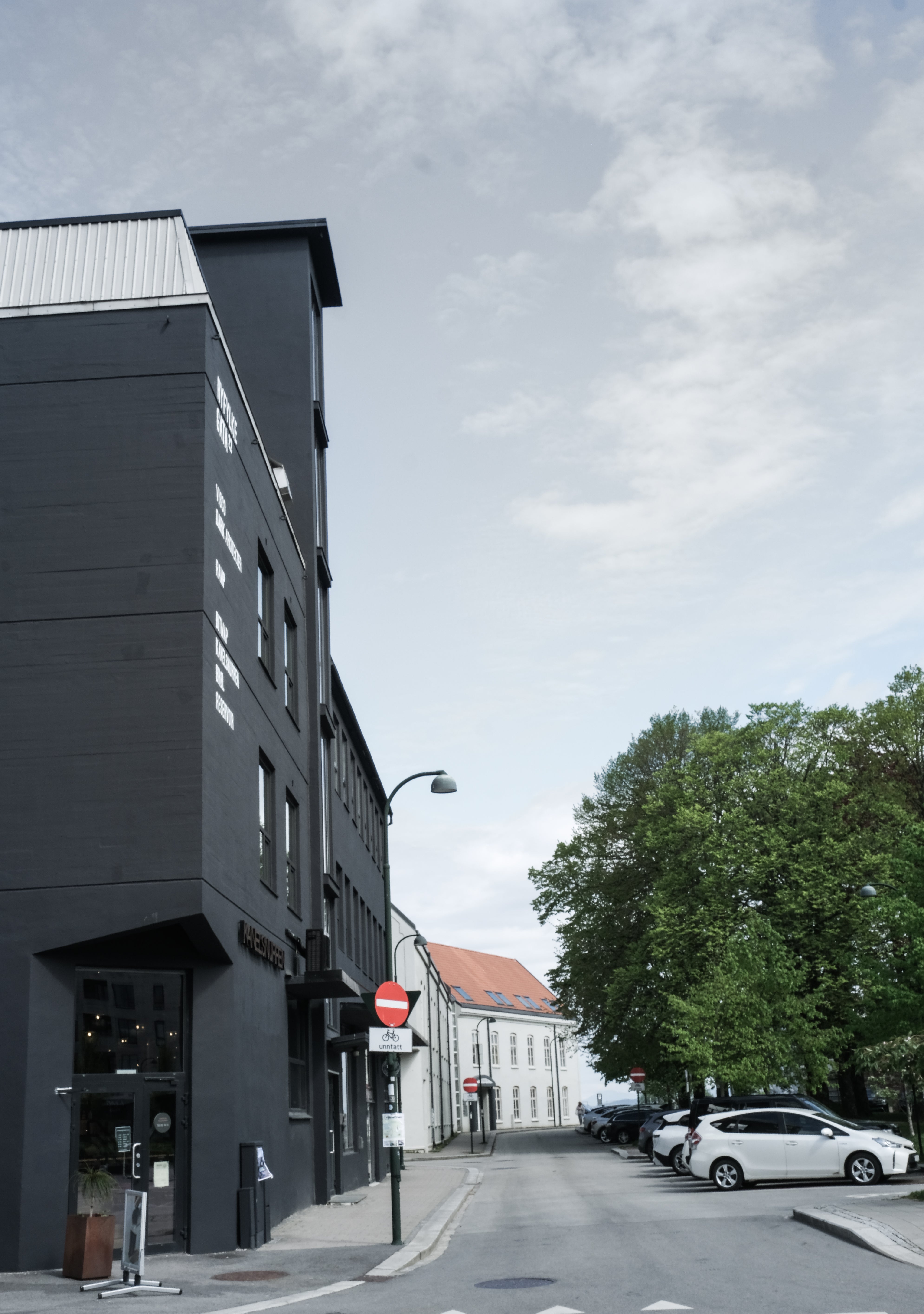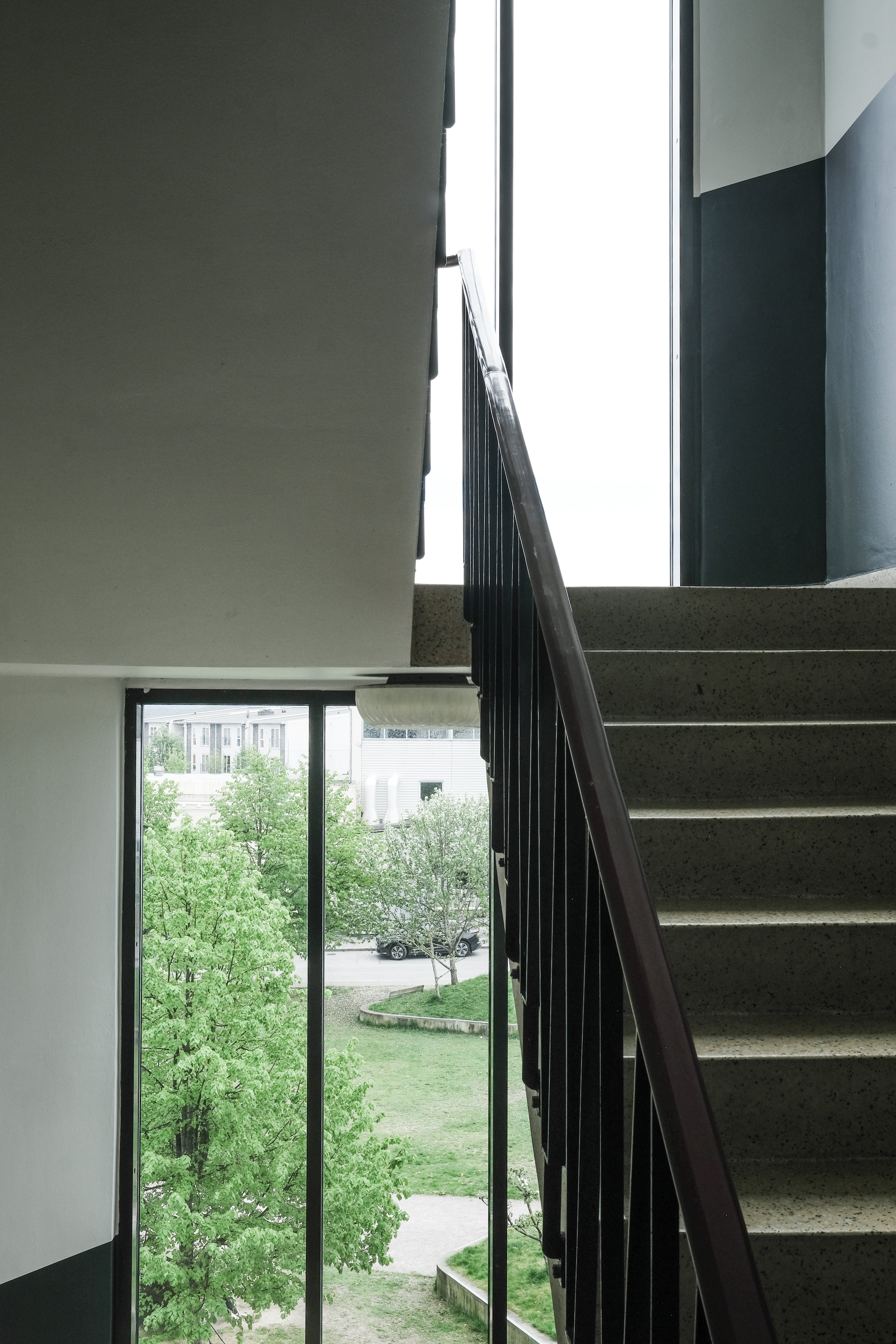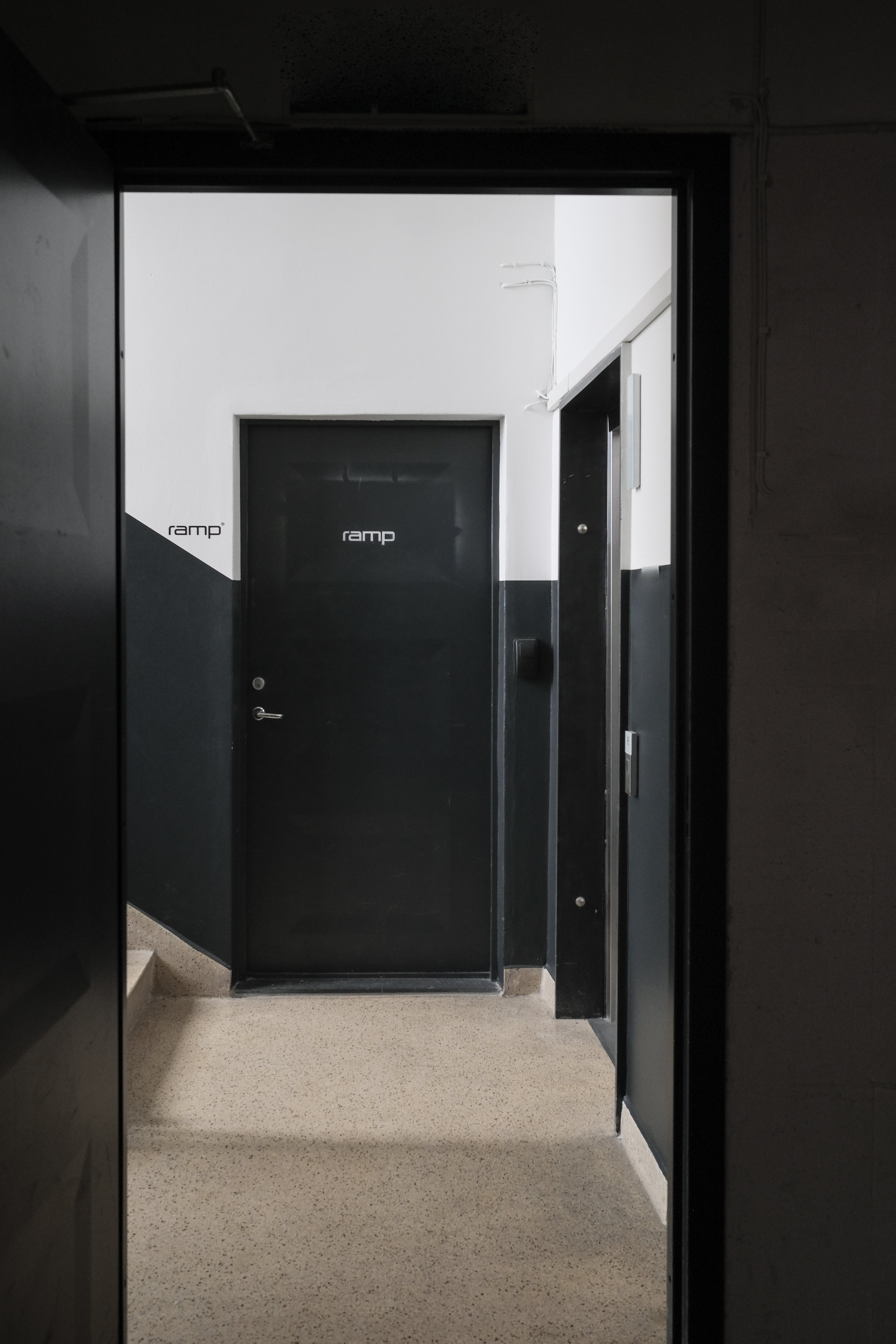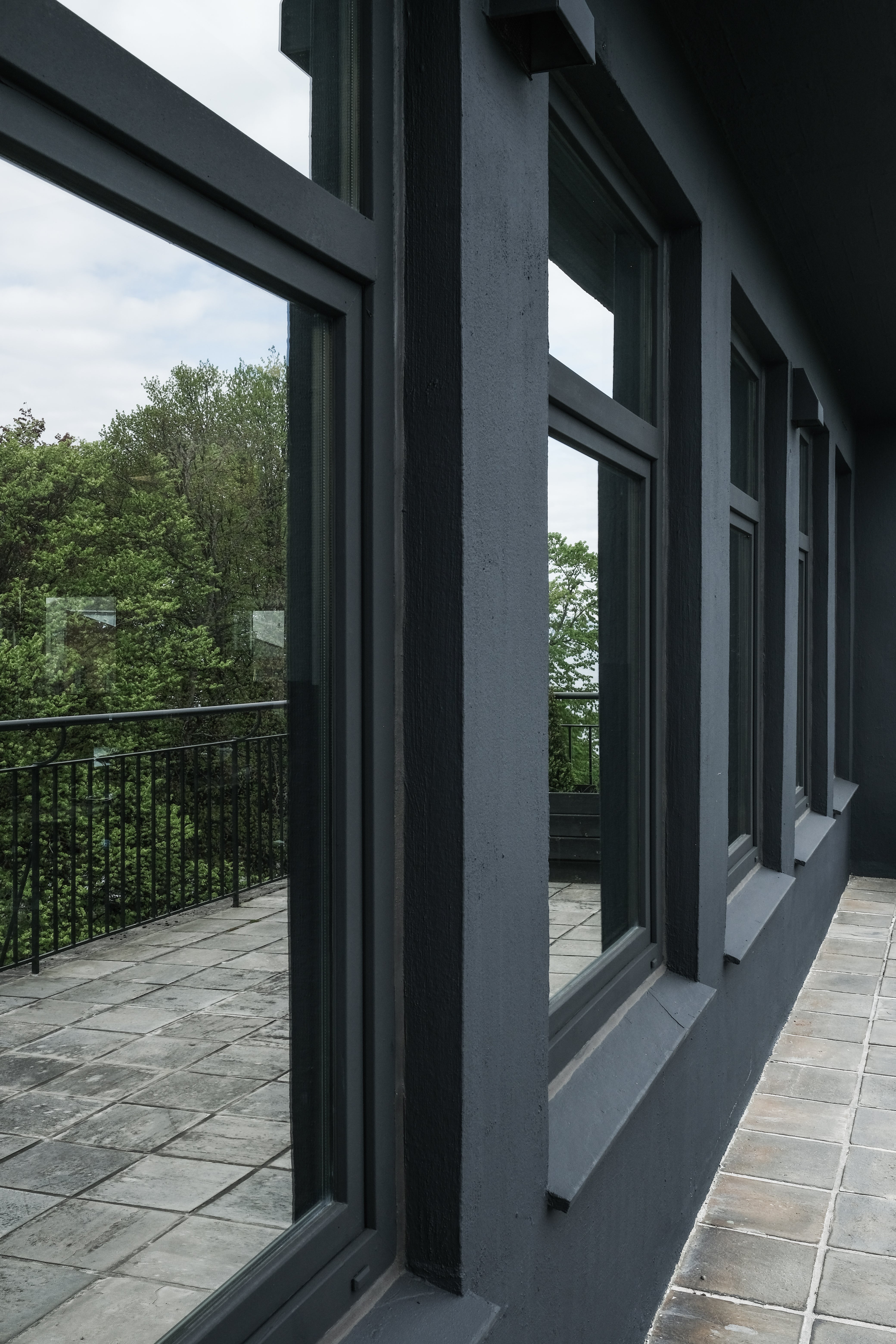 Valget av den dramatiske fasadefargen ble grundig diskutert blant flere av byggets leietakere i forkant, men i ettertid har resultatet fått enstemmig positiv respons. Fargen har gitt bygget et tydelig særpreg og gjort det til et signalbygg i bydelen – et referansepunkt som andre nå ser til. Den karakteristiske fargen ble videreført inn i hovedinngangen og opp trappeløpet, der den danner en waveline – en malt linje langs nedre del av veggen som fører fasadens uttrykk sømløst inn i interiøret. Dette grepet binder byggets ytre og indre sammen på en subtil, men virkningsfull måte. Waveline-elementet har senere blitt gjenskapt flere steder i bygget, blant annet i baktrapp og fellesarealer, som et gjennomgående motiv og visuell signatur. I trappehuset ble de originale taklampene – som var på vei til å bli kastet – reddet fra konteineren, restaurert og satt tilbake på sin opprinnelige plass. Det originale betonggulvet og trappeløpet ble bevart og fremhevet som autentiske elementer som forteller byggets historie. Resultatet er en oppgradering som kombinerer bevaring og fornyelse – der industrielle kvaliteter møter moderne presisjon og tidløs eleganse.