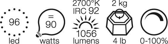 Pendellampe som gir direkte og indirekte lys. Fjernkontroll med dimmerbryter. Høydejusterbar fra 0,4 til 1,98 meter.