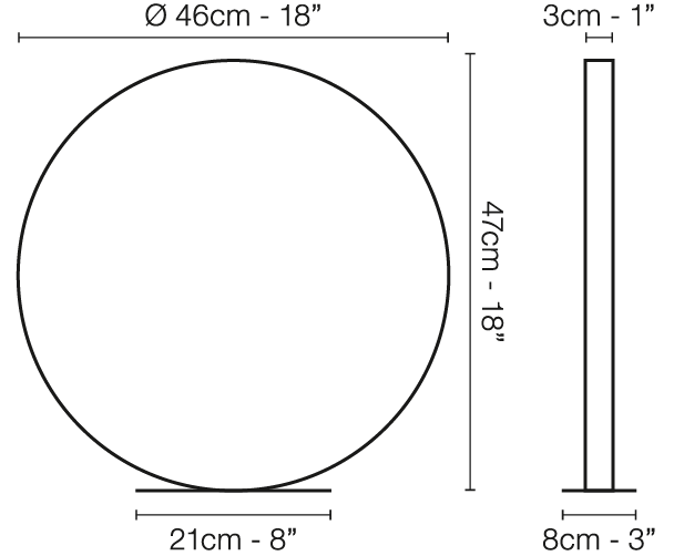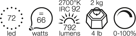 Bordlampe som gir direkte og indirekte lys. 1.8 meter lang strømledning med dimmerbryter. Elektronisk transformator med utskiftbar strømplugg (USA, UK og UE)
