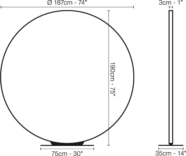 Gulvlampe som gir direkte og indirekte lys. 1,8 meter lang strømledning med dimmerbryter. Elektronisk transformator med utskiftbar støpsel (USA, UK og UE)