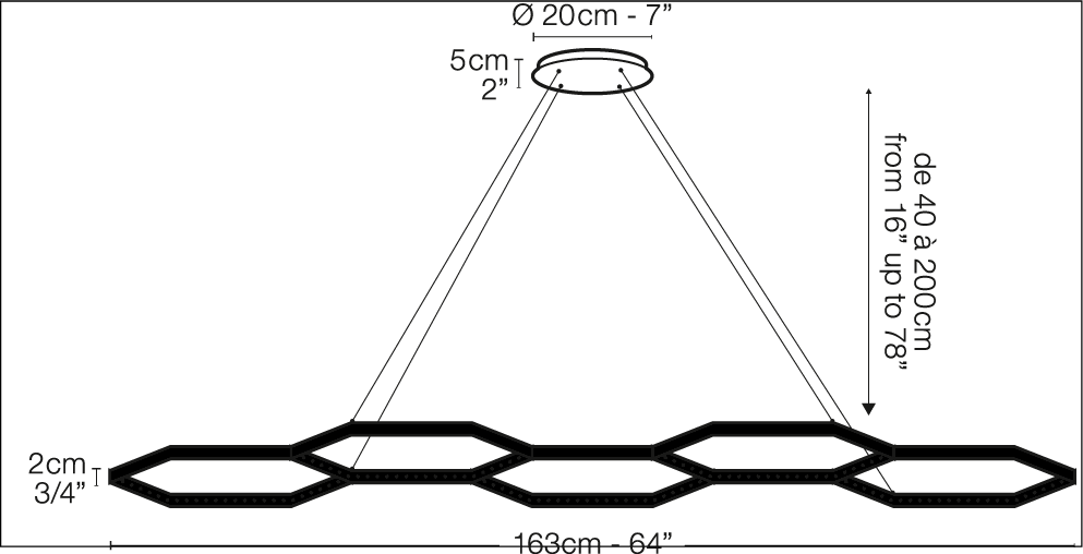 Pendellampe som gir direkte og indirekte lys. Fjernkontroll med dimmebryter.
