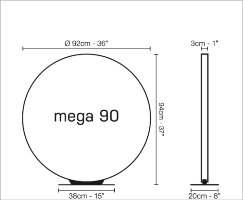 Bord/Gulvlampe som gir direkte og indirekte lys. 1.8 meter lang strømledning med dimmerbryter. Elektronisk transformator med utskiftbar strømplugg (USA, UK og UE)