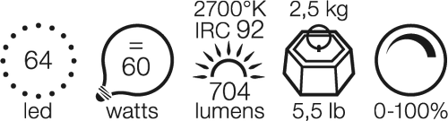Bordlampe som gir direkte og indirekte lys, Strømkabel på 2 meter med dimmebryter.
